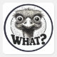 Furia emplumada e incredulidad. Esta hoja de calcomanías presenta un emú enojado que exige "¿Qué?": un diseño audaz y expresivo para amantes del humor animal descarado. DSE Graphics | Arte con Actitud.