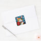 Pegatina Cuadrada Calico Cat, Poinsettias and Snowflakes Christmas