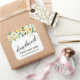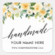 Caligrafía hecha a mano amarillo floral blanca pequeña Pegatina cuadrada