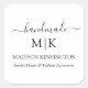Moderno caligrafía Minimalista Script Business Handmade Square Product Pegatinas. Blanco y negro o elige tus colores personalizados. Perfecto para pequeñas empresas, marcas de empresas, autónomos, vendedores en línea y más. Fácil de personalizar con sus iniciales de monograma, nombre comercial e información, título de trabajo, lema o incluso añadir su logotipo o diseño de marca personal.