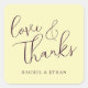 Esta pegatina cuadrada presenta un diseño elegante con un fondo beige pálido y texto burgundy profundo. La frase "amor y agradecimiento" está escrita en una fuente cursiva fluida, mientras que los nombres debajo se presentan en una tipografía sans-serif limpia, creando un equilibrio armonioso entre elegancia y modernidad. La estética minimalista se centra en el mensaje sincero, lo que la hace perfecta para expresar gratitud y afecto. Ideal para personalizar regalos o añadir un toque de calidez a cualquier ocasión, esta pegatina transmite aprecio con su estilo simple pero sofisticado.