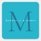 Pegatina Cuadrada Calligrafía monogramada Azure Blue Modern Plain