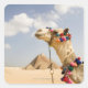 Pegatina Cuadrada Camello con las pirámides Giza, Egipto