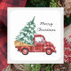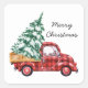 Pegatina Cuadrada Camión clásico moderno de Navidades rojos