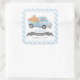 Pegatina Cuadrada Camión de calabaza azul Gingham Boy 1er cumpleaños