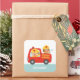 Pegatina Cuadrada Camión rojo de bomberos con bombero y cachorro