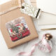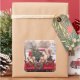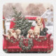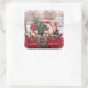 Pegatina Cuadrada Camión Rojo Retro De Navidades Cuidados Con Perros
