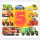 Pegatina Cuadrada Camiones grandes 5 cumpleaños