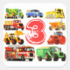 Pegatina Cuadrada Camiones grandes niños tercer cumpleaños