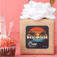 Pegatinas de campamento de playa retro para despedida de soltera para combinar con tus camisetas. Estos banners personalizados muestran una puesta de sol retro con un dicho que se ajusta al estado de ánimo de tu viaje de chicas y un gran fondo para todas tus fotos de vacaciones.