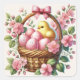 Pegatina Cuadrada Canasta de Pascua Huevos Rosados Pollito Amarillo