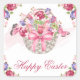 Pegatina Cuadrada Canasta floral rosa y mariposas Feliz Pascua