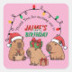 Pegatina Cuadrada Capybara Pink Christmas Holiday Birthday