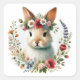 Ilustracion pintado a mano de un conejito adorable con una delicada corona de flores.