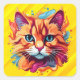Pegatina Cuadrada Cara de gato de color lindo-87002