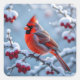Pegatina Cuadrada Cardenal Bonito en una rama de nieve Navidades