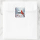 Pegatina Cuadrada Cardenal navidad En Rama De Berry Rojas