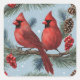 Pegatina Cuadrada Cardenales rojos, bayas, ramas de pino, pineconas