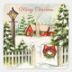 Pegatina Cuadrada Casa de Navidad Linterna Árboles de Pino Rojo