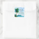 "Mint to Be on the Beach", una boda cuadrada personalizada favorece al pegatina con un fondo tropical de playa y palmeras, personalizado impreso con su fecha y nombres de boda.
