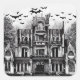 Una vieja mansión acosada con murciélagos volando sobre sus cabezas. Añade tu propio texto para personalización.