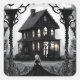Pegatina Cuadrada Casa embrujada con la espeluznante dama fantasma