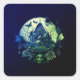 Pegatina Cuadrada Casa gótica verde y morada embrujada