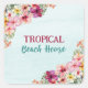 Pegatina Cuadrada Casa Tropical Beach Flowers Rosa Botánica Floral