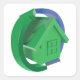 Una casa verde con flechas verdes alrededor. Este diseño parece realmente efectivo para estos Pegatinas