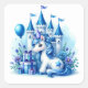 Pegatina Cuadrada Castillo Cute Blue Unicorn y Fairytale