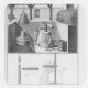 Pegatina Cuadrada Casting campanas, ilustracion de la 'Enciclopedia'
