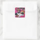 PEGATINA CUADRADA CAT CON MÁSCARAS DE GORRA DE HARLEQUINA Y FIESTA D