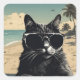 Pegatina Cuadrada Cat on Beach - Diseño de alta calidad