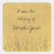 Pegatina Cuadrada Cattails Nombre personalizado del dibujo botánico