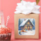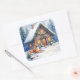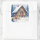 Pegatina Cuadrada Caucasian Shepherd Dog Mountain Cabin Christmas
