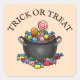 El caldero de la bruja está lleno de dulces y listo para la fiesta de Halloween.