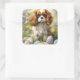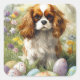 Pegatina Cuadrada Cavalier King Charles Spaniel con huevos de Pascua