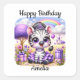 Pegatina Cuadrada Cebra de cumpleaños adorable en Tiara