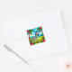 Pegatina Cuadrada Cebra Personalizado alegre en un paisaje tropical