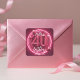 Un diseño vibrante con un resplandor rosa neón radiante rodea un "40" cromado brillante. El texto está en una fuente cursiva elegante, enmarcando perfectamente el número. Globos metálicos flotantes añaden un toque de celebración, haciendo que esta pegatina sea una declaración moderna y personal para cualquier celebración de cumpleaños número 40.