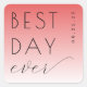 Esta pegatina de boda presenta un diseño moderno y divertido con un fondo degradado que pasa de rosa coral profundo a melocotón claro. La frase "BEST DAY ever" se muestra de manera prominente en letras mayúsculas y negritas, combinadas con una elegante escritura cursiva, lo que crea un impacto visual llamativo. El diseño es limpio y equilibrado, y enfatiza el mensaje de celebración sin motivos o elementos adicionales. Perfecta para agregar un toque personal a su día especial, esta pegatina captura un estado de ánimo animado y alegre, lo que la hace ideal para bodas y otras celebraciones importantes.