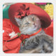 PEGATINA CUADRADA CELEBRITY CAT PRINCESS TATUS CON GORRA ROJO