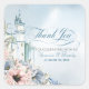 Un bonito y elegante cuento de hadas favorece al pegatina para agradecer a sus huéspedes el tema de la Cenicienta, con un castillo, una hermosa botánica floral rosa y azul, una zapatilla de vidrio faltante para coincidir con las invitaciones en nuestra tienda. Todo el texto es completamente personalizable y se puede editar para adaptarlo a sus necesidades.