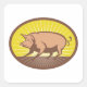 Pegatina Cuadrada Cerdo de granja retro con explosión de sol