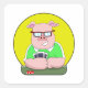 Pegatina Cuadrada Cerdo en Poker con tarjetas