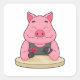Pegatina Cuadrada Cerdo en Poker con tarjetas de Poker