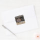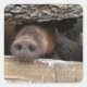 Pegatina Cuadrada Cerdo marrón tocando la nariz a través de una vall
