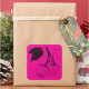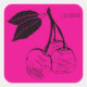 Pegatina Cuadrada Cerezo en flor en primavera Xilografía