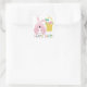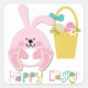 Pegatina Cuadrada Cesta de conejo rosa de Pascua