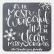 Hermosa tipografía basada en pegatina de vacaciones. "Es la época más maravillosa del año" aparece en una tipografía con letras blancas en un fondo de pizarra gris a carbón, acentuado con copos de nieve blancos.